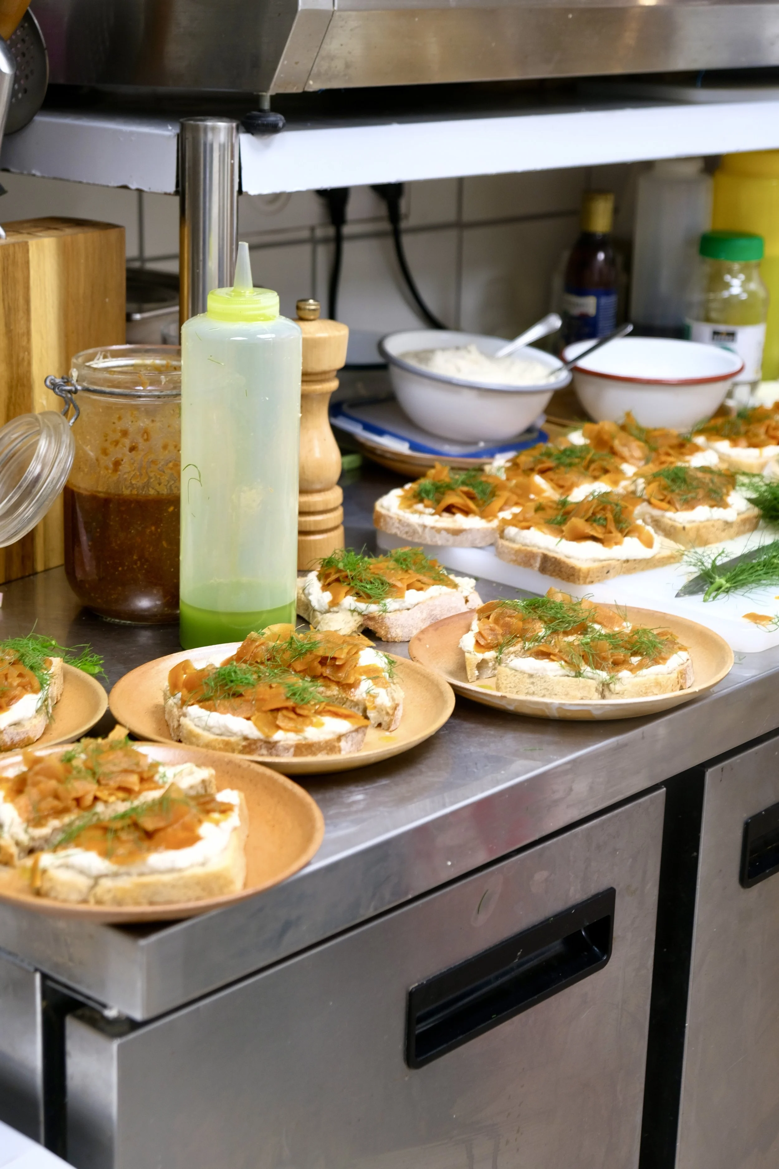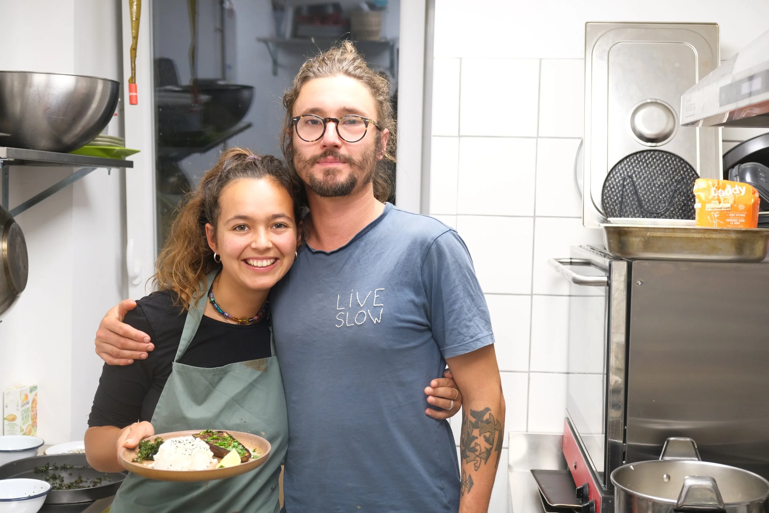 A farm-to-table pop-up dinner at Les Zigues, a local café in Bretagne, France. Using organic, seasonal vegan produce sourced directly from nearby farm La Ferme à Tonton.